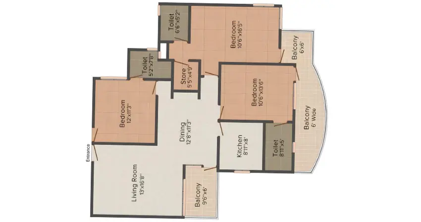 | Floor Type | Super Area (Sq. Ft.) | Carpet Area (Sq. Ft.) | Balcony Area (Sq. Ft.) | Approx. Pricing (INR) |