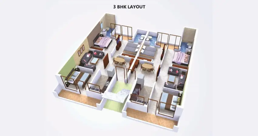 | 3BHK Standard | 1625 | 1200 | 200 | 69,00,000 |