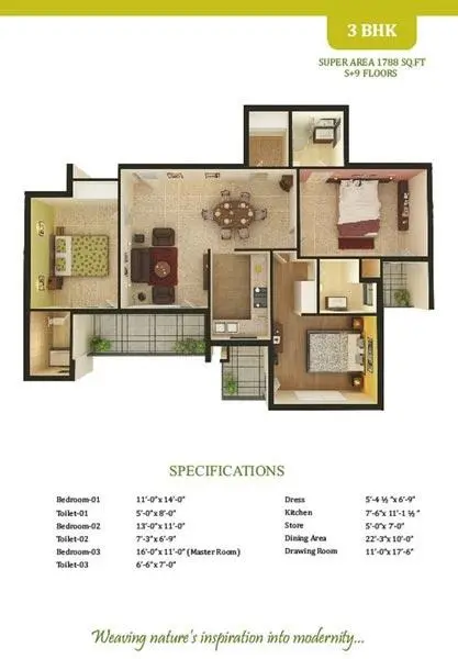 | 3 BHK Apartment | 1671-1971 | Master suites, dining space, multiple balconies, and premium fittings | 35.99-42.45 Lakh |