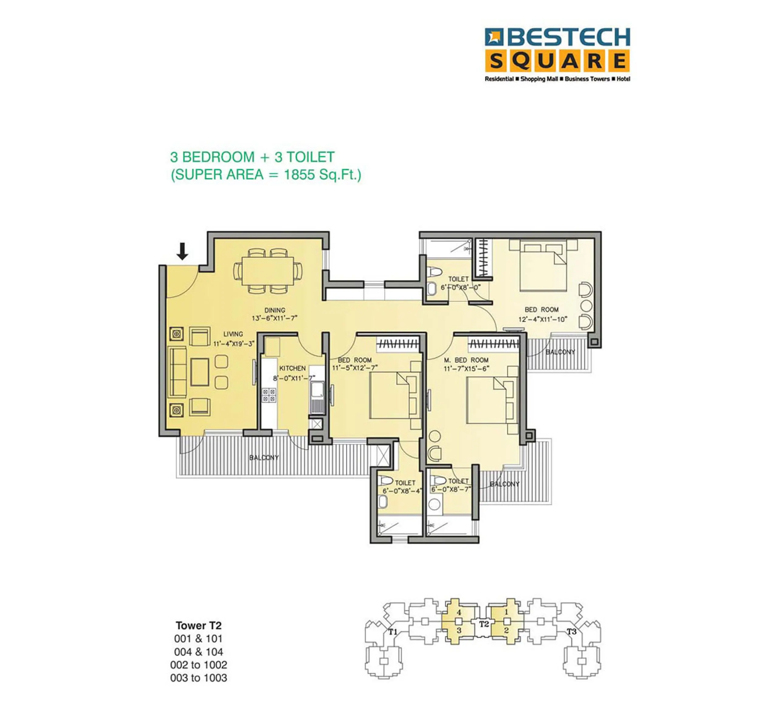 | 3 BHK | 1560 | 1092 | 120 | 1.20 Cr |