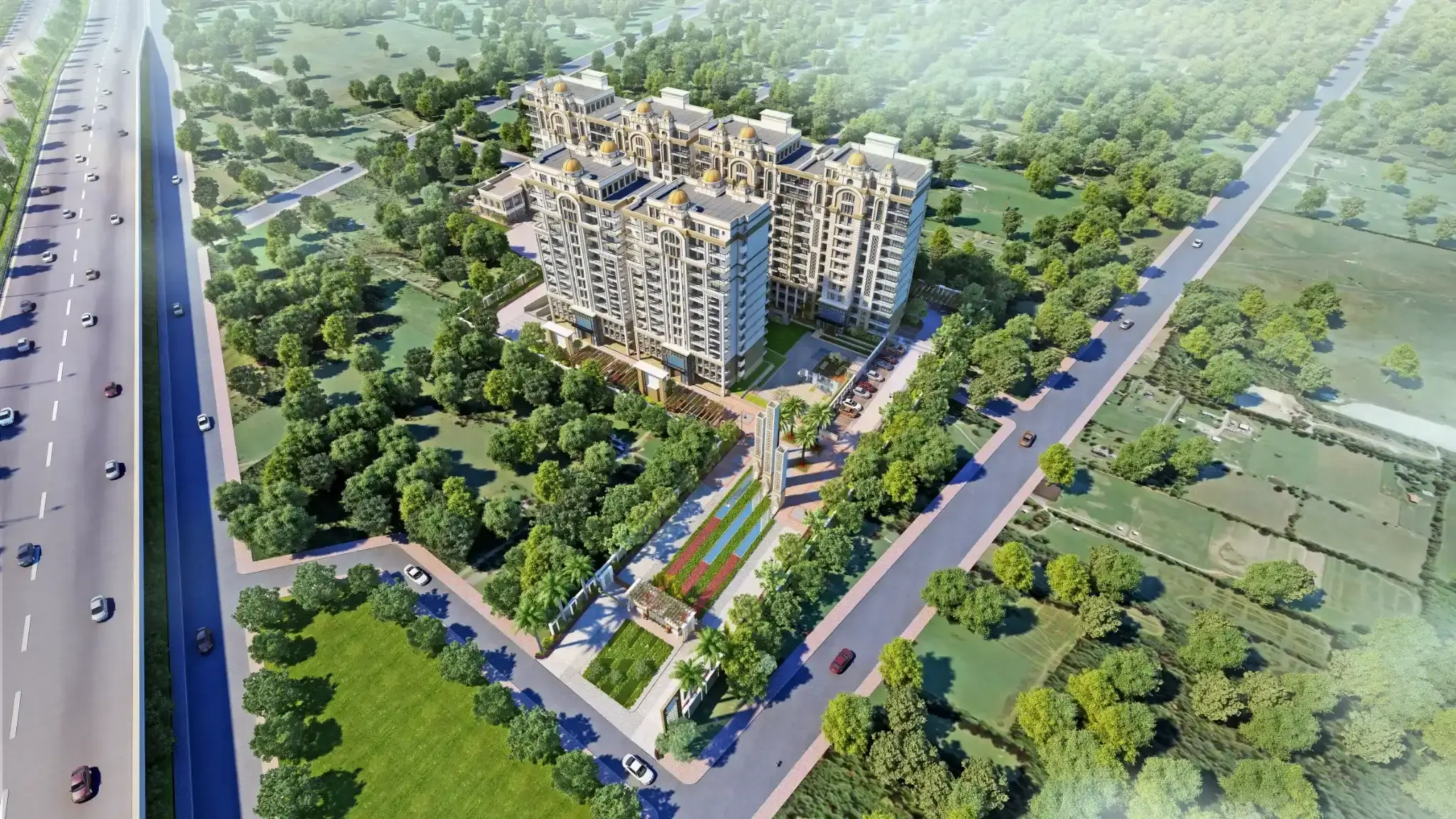 Exotic Grandeur incorporates Vastu principles to promote harmony and positive energy. Entrances face north-east for prosperity, kitchens are positioned in the south-east for health, and bedrooms avoid beams overhead to ensure restful sleep. The layout maximizes natural light and ventilation, aligning with traditional Vastu guidelines while fitting modern high-rise apartments in Panchkula aesthetics. This thoughtful integration makes it a balanced choice for those valuing spiritual well-being in Panchkula residential projects.