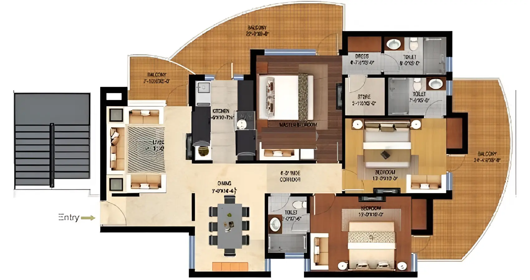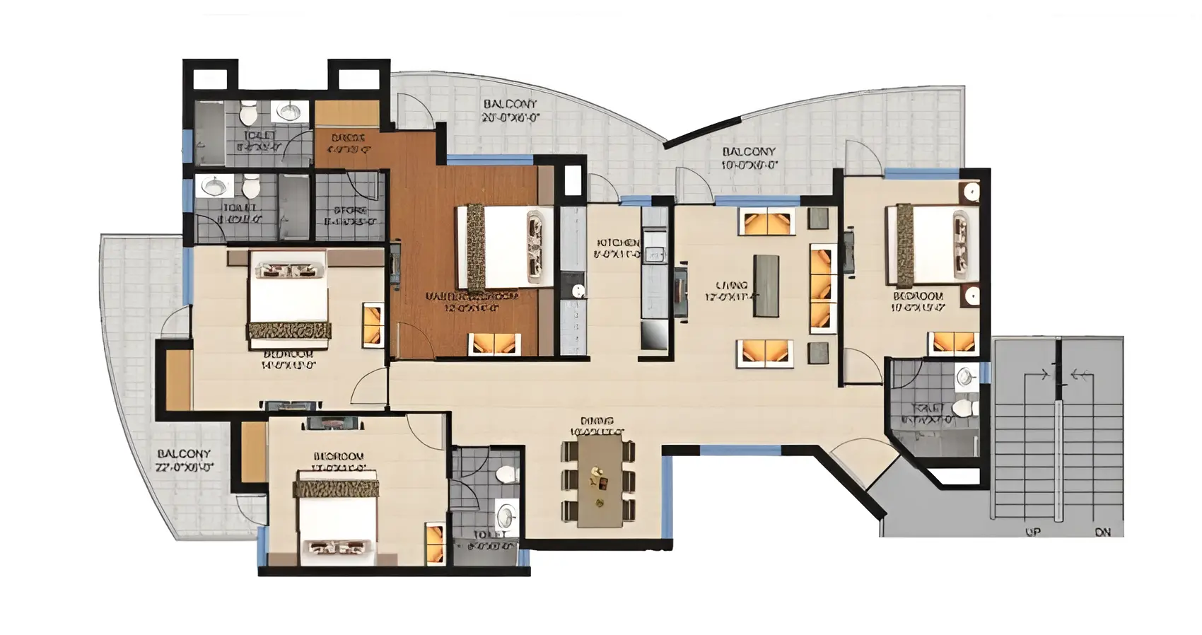 | Floor Type | Super Area (Sq. Ft.) | Carpet Area (Sq. Ft.) | Balcony Area (Sq. Ft.) | Approx. Pricing (INR) |