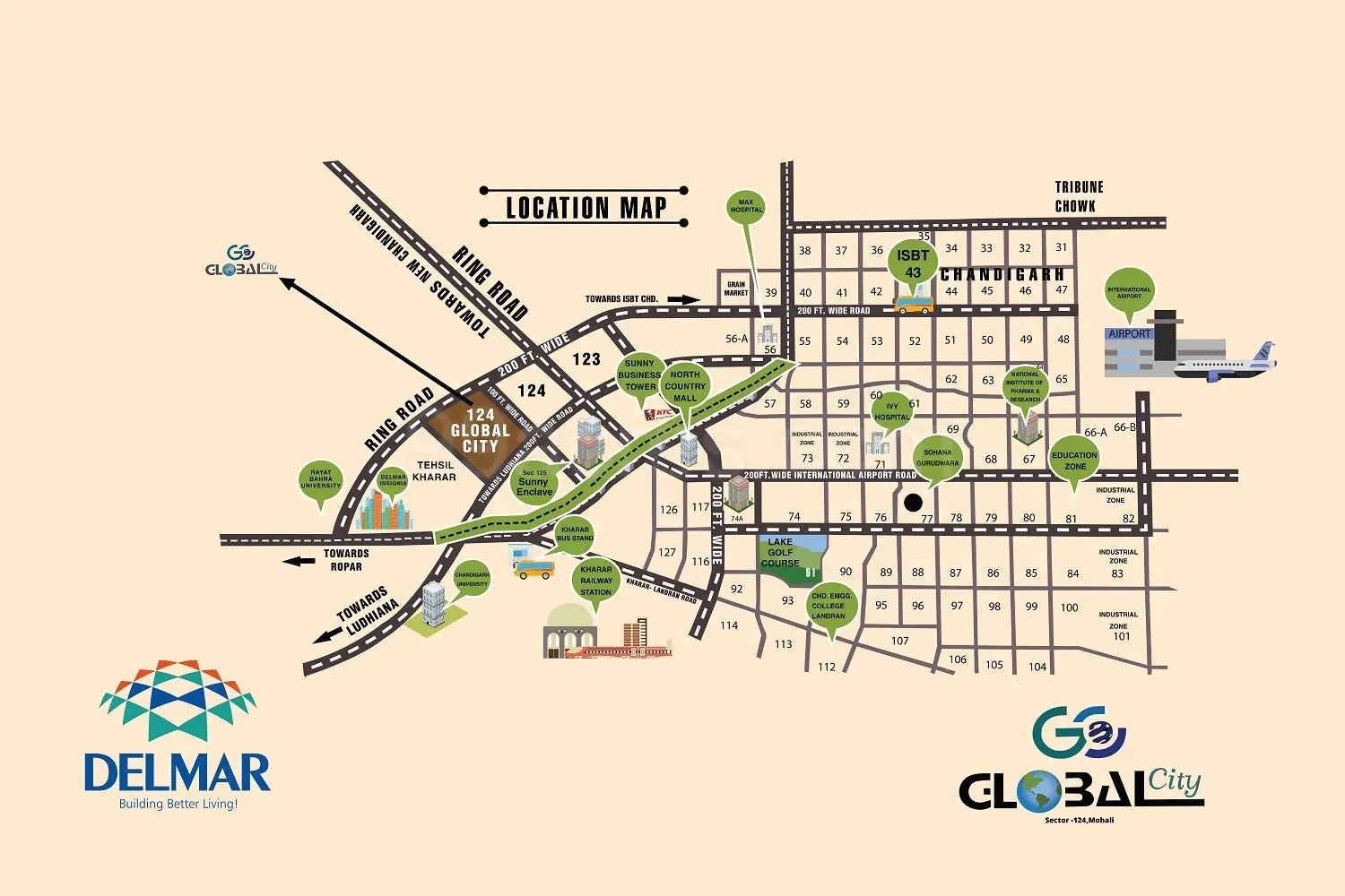 Global City stands out as a sprawling township in the real estate in Mohali, developed by the experienced real estate company in Mohali, Realm Developers Pvt Ltd (in association with Bajwa Developers for parts). Located in Sector 124 of Sunny Enclave, Kharar, this 50-acre project provides flexible residential plots in Mohali, independent floors, and villas designed for custom family homes with premium infrastructure. With RERA registration PBRERA-SAS80-PR0253 ensuring compliance and trust, it caters to buyers looking for residential property in Mohali on the upcoming 200 ft wide Ludhiana Bypass near the International Airport. As part of the Mohali residential projects, it attracts investors and families desiring a gated community with high growth potential. In the landscape of housing projects in Mohali and new residential projects in Mohali, Global City excels with its vision to expand to 150 acres, offering a blend of modern facilities and green spaces, making it a top contender among best residential projects in Mohali and GMADA approved residential projects in Mohali. Homeowners appreciate the ready-to-move options, positioning it well in luxury residential projects in Mohali and affordable housing projects in Mohali within Punjab's vibrant property scene.