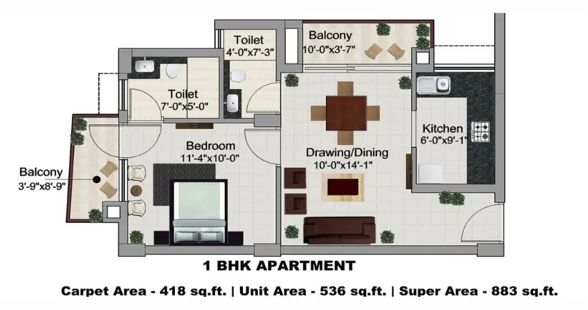 | 1 BHK | 800 | 600 | 100 | 50-60 Lac |