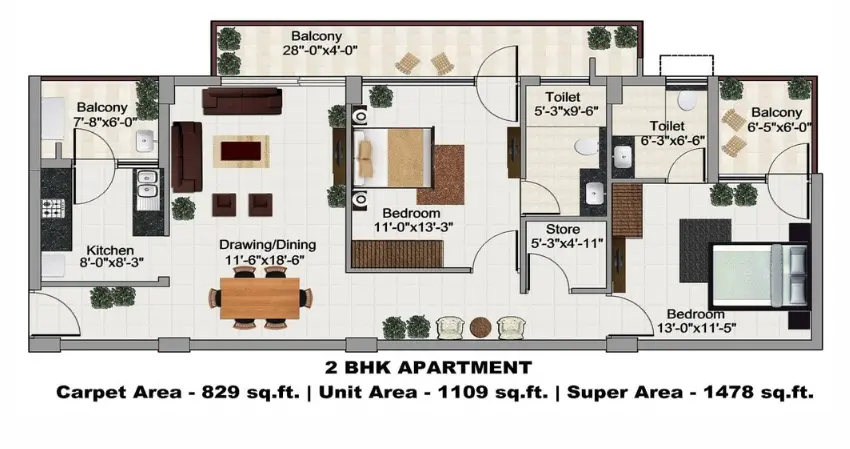 | Floor Type | Super Area (Sq. Ft.) | Carpet Area (Sq. Ft.) | Balcony Area (Sq. Ft.) | Approx. Pricing (INR) |