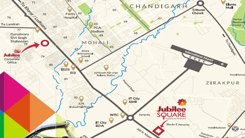 Jubilee Square in Aerocity Mohali stands as a premier commercial hub in the heart of Mohali's thriving real estate scene. Spanning 4 acres, this ready-to-move project caters to businesses seeking high-visibility spaces like showrooms and offices in Block-E. With its strategic positioning on PR7 International Airport Road, it blends convenience with modern design, making it a go-to choice among Mohali real estate projects. Whether you're eyeing Mohali residential projects nearby or focusing on commercial property, Jubilee Square offers unmatched connectivity to key areas, fostering growth for entrepreneurs and investors alike. As part of the broader real estate in Mohali landscape, including high rise apartments in Mohali and affordable housing projects in Mohali, it emphasizes quality and accessibility. The project is RERA-registered (PBRERA-SAS81-PC0077), ensuring transparency and reliability in this dynamic Mohali project.