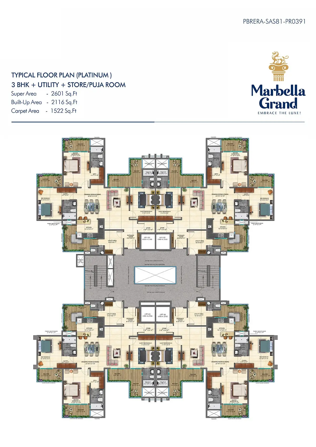 | 3 BHK + Servant | 2601 | ~1800-2000 | ~200-300 | ₹2.95 Cr - ₹3.35 Cr |