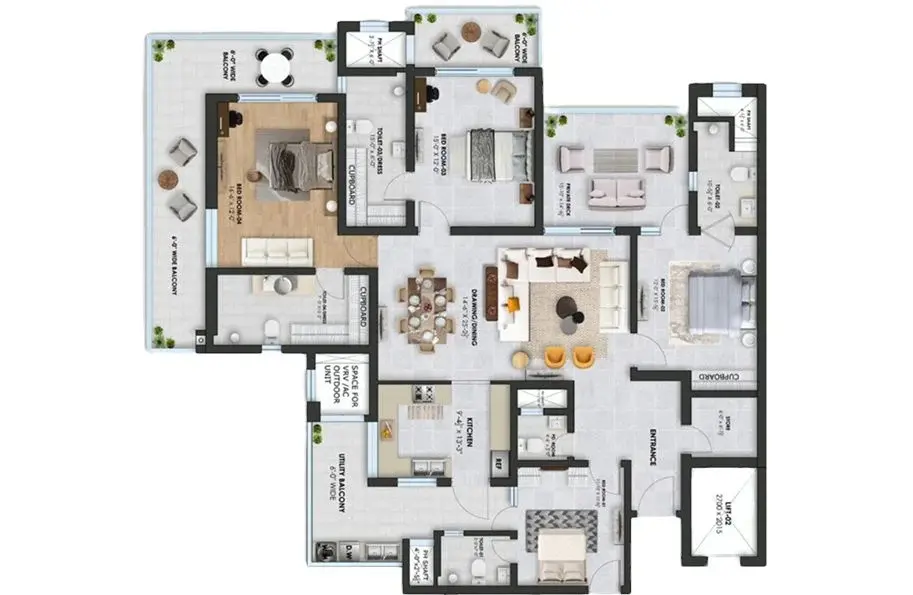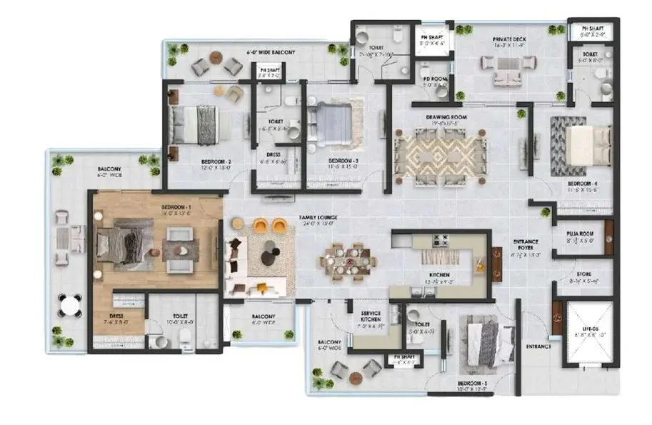 | 4 BHK + Servant | 3,000 - 3,500 | 2,200 - 2,600 | 300 - 500 | ₹2.99 Cr - ₹3.50 Cr |