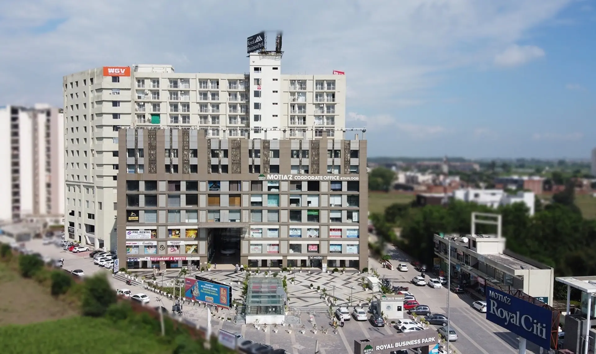 Nestled on the bustling PR-7 Airport Road in Ghazipur, Motiaz Royal Business Park stands out as a flagship among commercial projects in Zirakpur. Developed by the renowned Motia Group, this integrated business hub spans about 3 acres and caters to growing enterprises with flexible spaces like SCOs (Showroom Cum Offices), commercial plots, and modern office setups. It's perfect for those eyeing Zirakpur real estate projects, blending affordability with Grade-A facilities. The park supports a vibrant ecosystem with hotels, restaurants, and banquets, making it a go-to for real estate commercial projects in Zirakpur. Its strategic spot on the Delhi-Chandigarh Highway ensures high visibility and easy access, appealing to businesses in this thriving suburb. As part of upcoming commercial projects in Zirakpur, it promises strong returns in a market buzzing with high-rise buildings in Zirakpur and new housing projects in Zirakpur nearby.
