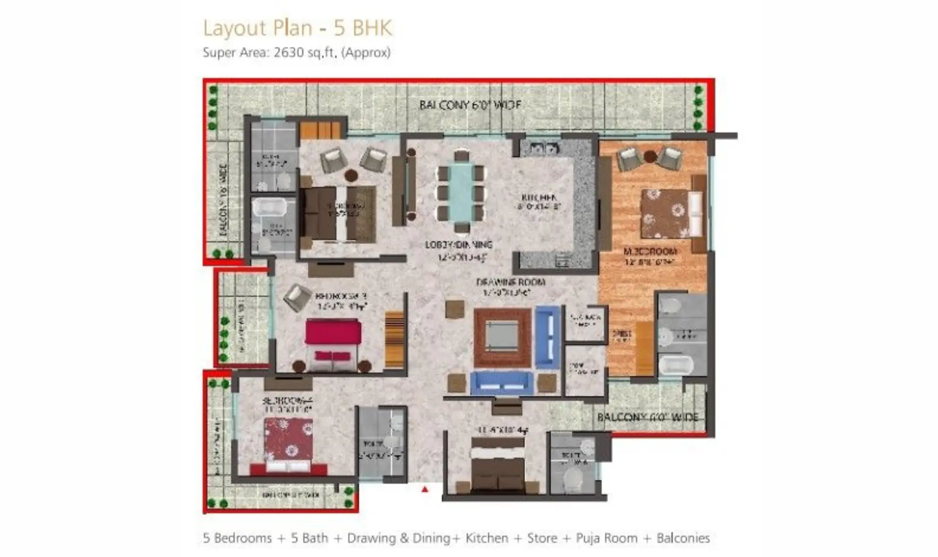 | 5 BHK | 3850 | 2800 | 500 | 2.35 Cr |