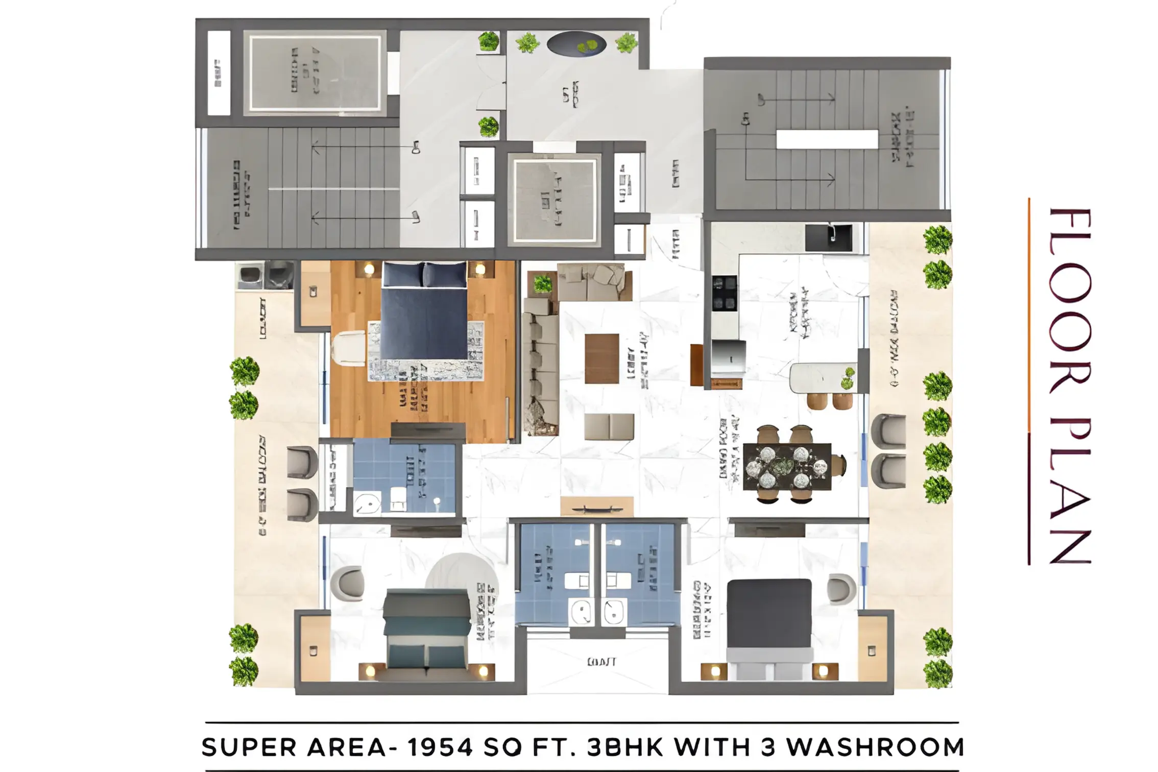 | 3 BHK Luxury Apartment | 1954 Sq. Ft. | ₹95 Lakhs* |