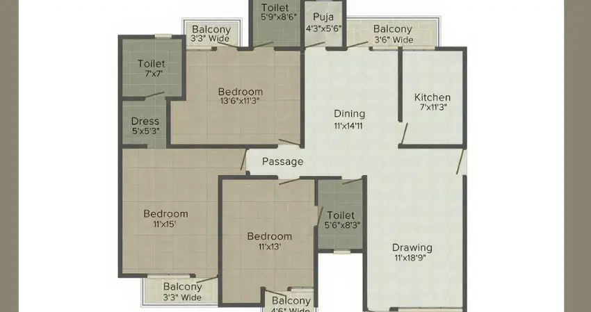 | Floor Type | Super Area (Sq. Ft.) | Carpet Area (Sq. Ft.) | Balcony Area (Sq. Ft.) | Approx. Pricing (INR) |