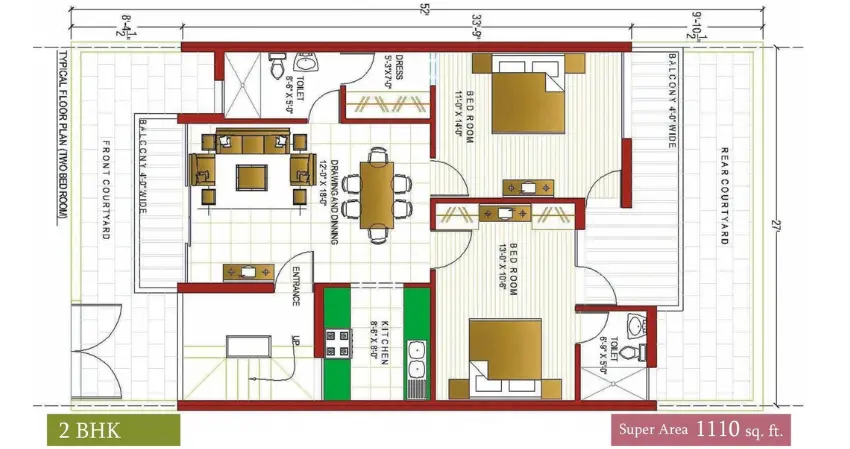 | 2 BHK | 1302 | 880 | 100 | 35,00,000 |