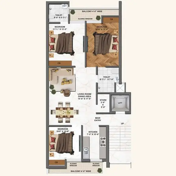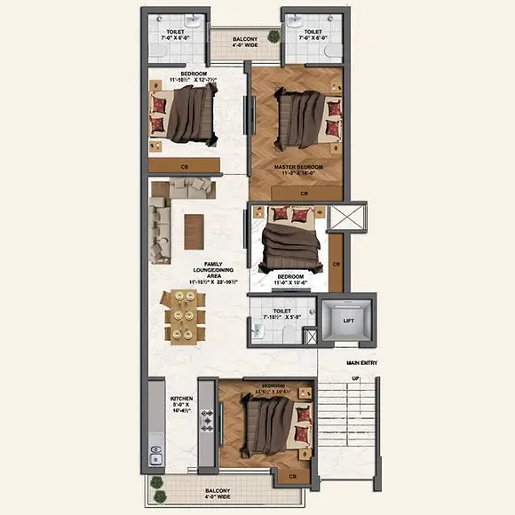 | Floor Type | Super Area (Sq. Ft.) | Carpet Area (Sq. Ft.) | Balcony Area (Sq. Ft.) | Approx. Pricing (INR) |