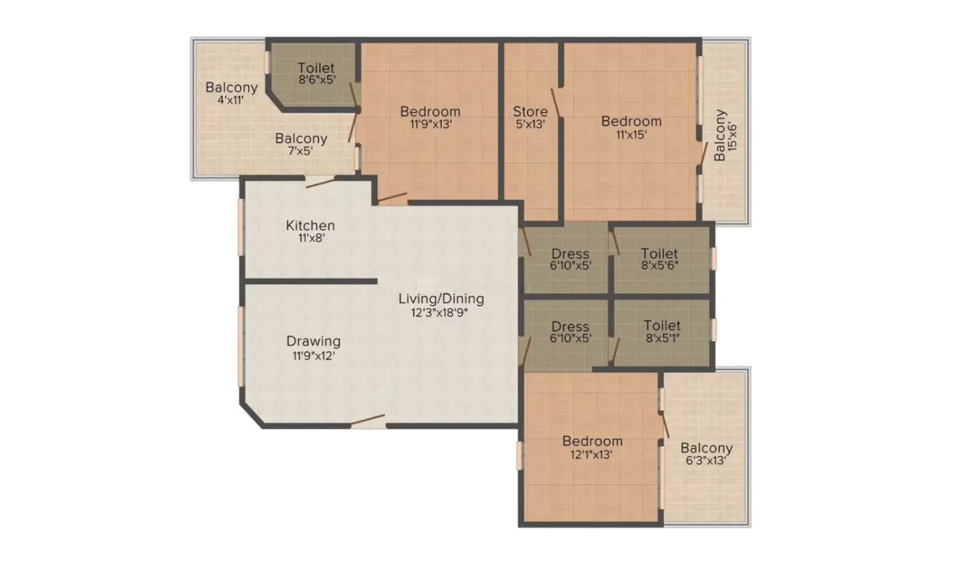 | Floor Type | Super Area (Sq. Ft.) | Carpet Area (Sq. Ft.) | Balcony Area (Sq. Ft.) | Approx. Pricing (INR) |