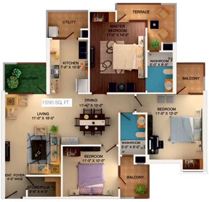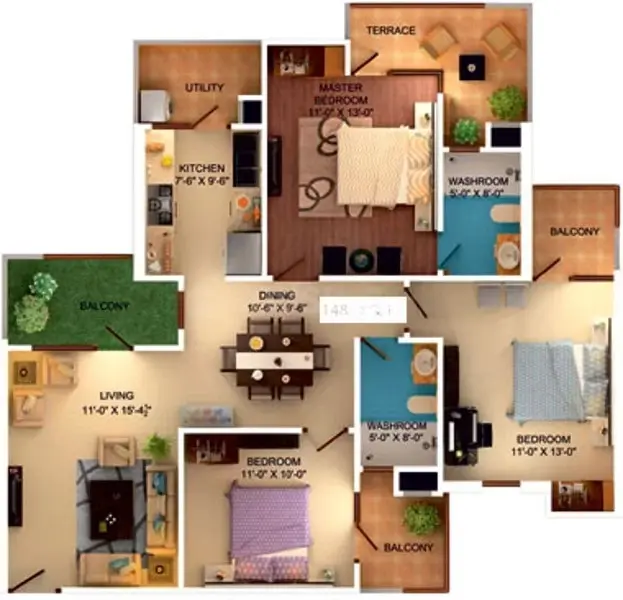 | 4 BHK Duplex | 1900 | 1520 | 200 | 1.10 Crore |