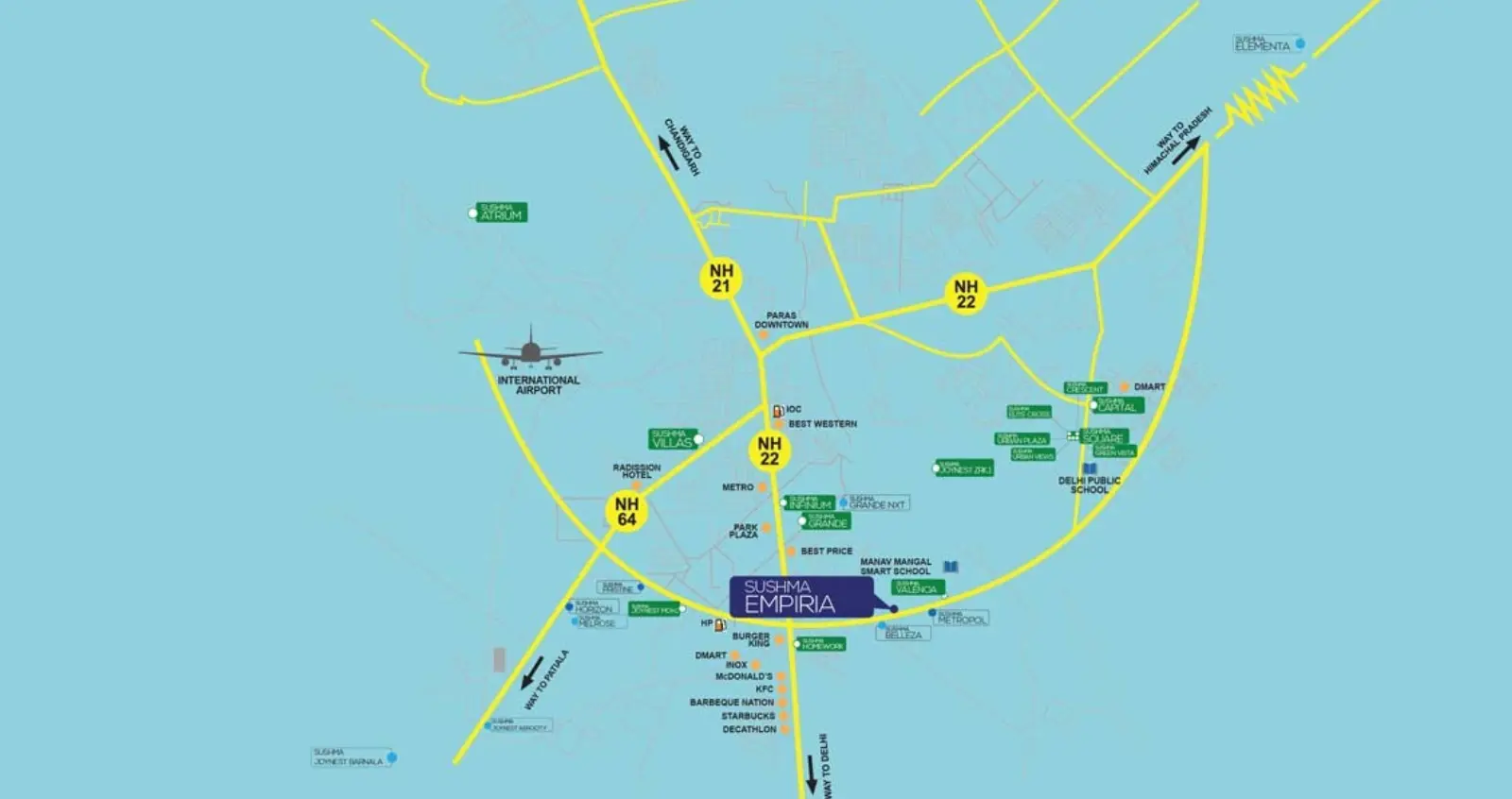 Sushma Empiria stands out among real estate projects in Mohali as a premium commercial development designed for businesses seeking growth in the thriving real estate in Mohali market. Located on the bustling PR7 Airport Road, this mohali project combines modern architecture with strategic connectivity, making it ideal for entrepreneurs and investors. Spanning about 7 acres as part of a larger township, it features a mix of showrooms, office spaces, and retail options that cater to the demand for mohali commercial projects. Built by a reputable real estate company in Mohali, Sushma Group, the project emphasizes sustainability with LEED certification and offers assured returns, drawing interest from those eyeing commercial projects in Mohali or real estate commercial projects in Mohali. Whether you're looking for high rise buildings in Mohali or affordable commercial spaces, Sushma Empiria delivers value in a safe, vibrant area like Mohali, close to residential projects in Chandigarh and upcoming residential projects in Punjab.
