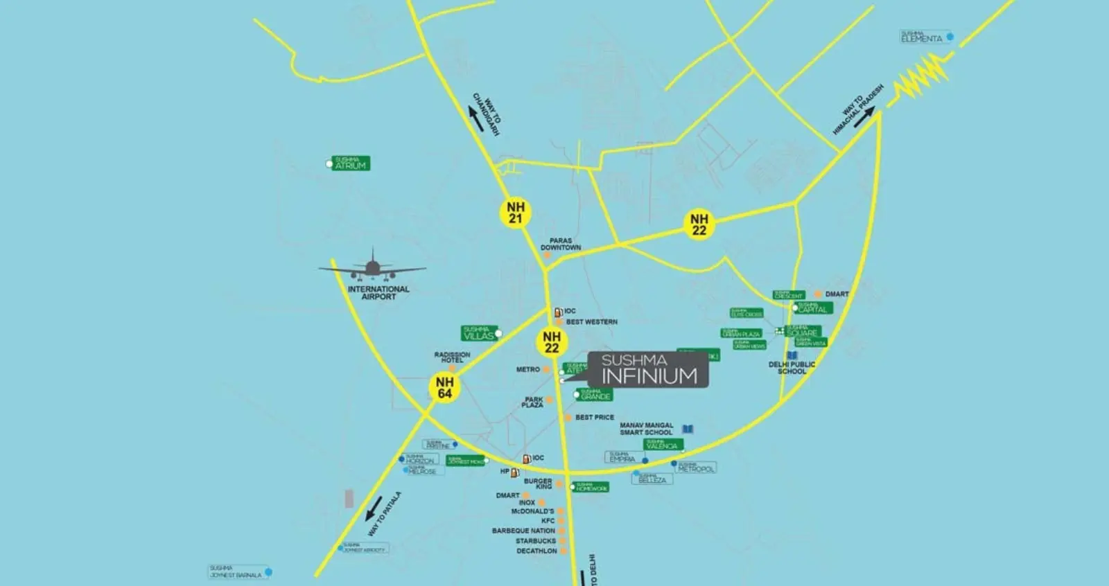 Sushma Infinium is fully vastu-compliant, promoting harmony and prosperity. The north-facing entrances invite positive energy, while open layouts ensure free flow of air and light. This design respects traditional principles, making it appealing for businesses in high-rise flats in Mohali or residential property in Mohali, where vastu plays a key role in success.
