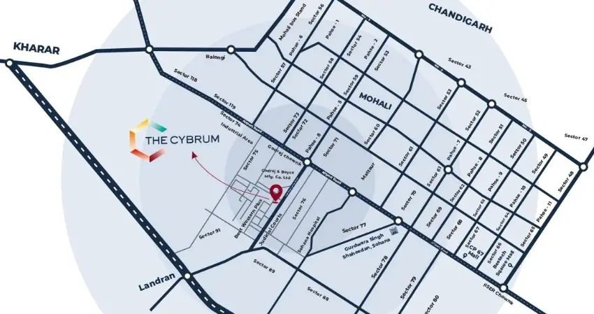 Nestled in the heart of Mohali's industrial hub, The Cybrum is a visionary commercial venture that's set to elevate the local real estate landscape. Spanning about 2 acres on a prime corner site, this project focuses on creating a futuristic ecosystem for businesses, blending high-end retail, office spaces, and leisure spots. It's RERA-registered under PBRERA-SAS81-PC0334, ensuring transparency and reliability. As one of the best projects in Mohali, it appeals to those seeking Mohali commercial property for sale or real estate commercial projects in Mohali. With its emphasis on innovation and accessibility, it's perfect for IT firms, retailers, and professionals aiming for growth in this safe, vibrant area – yes, Mohali is safe to live and work in, with low crime rates and excellent infrastructure.