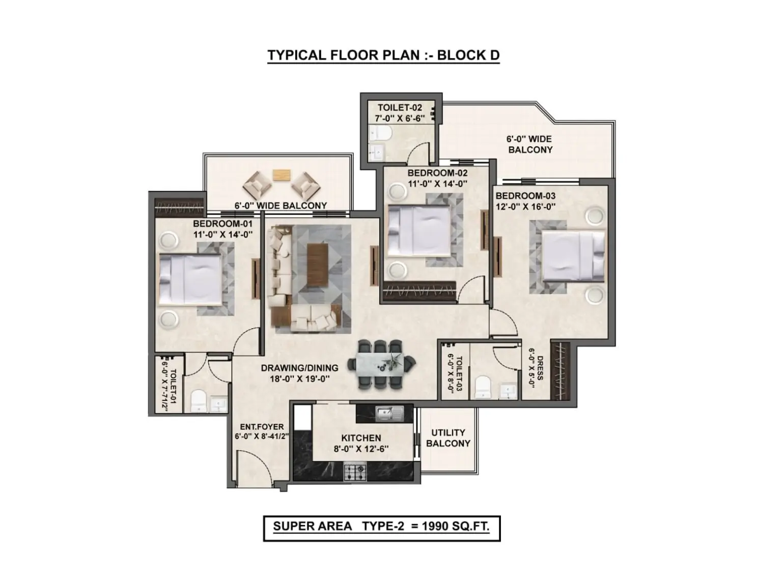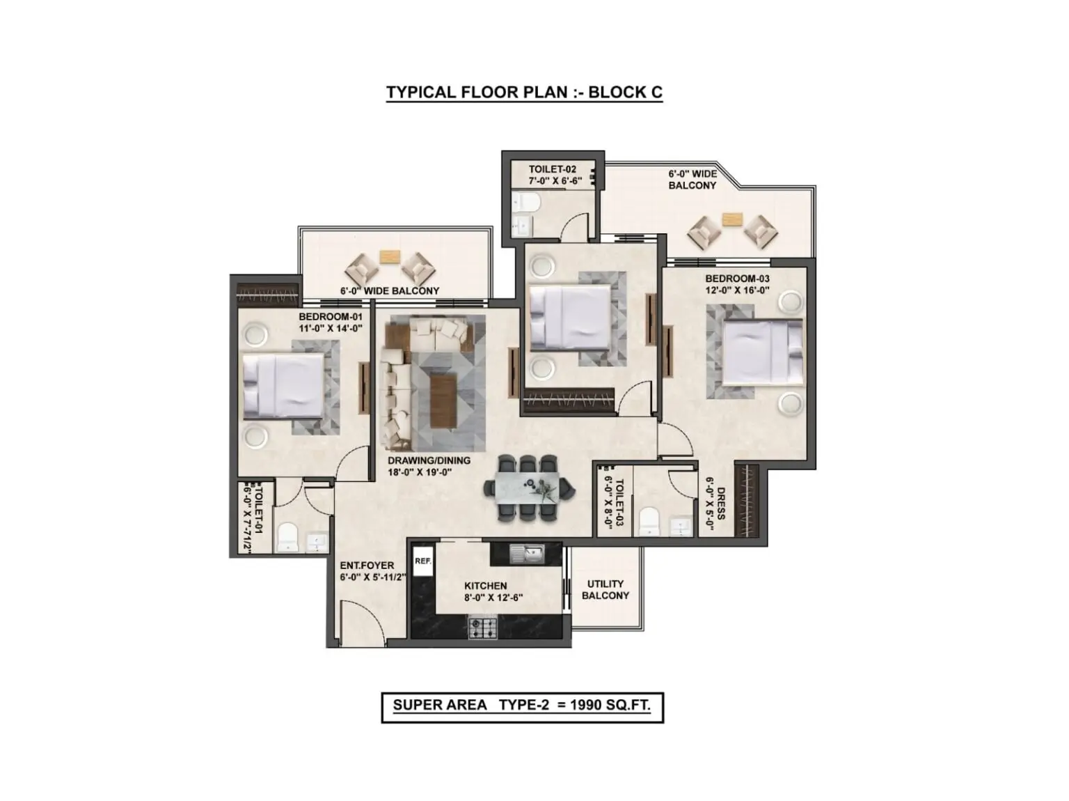 | 3 BHK | 1990 | 1470 | 150-200 | 1.55 Cr - 1.95 Cr |