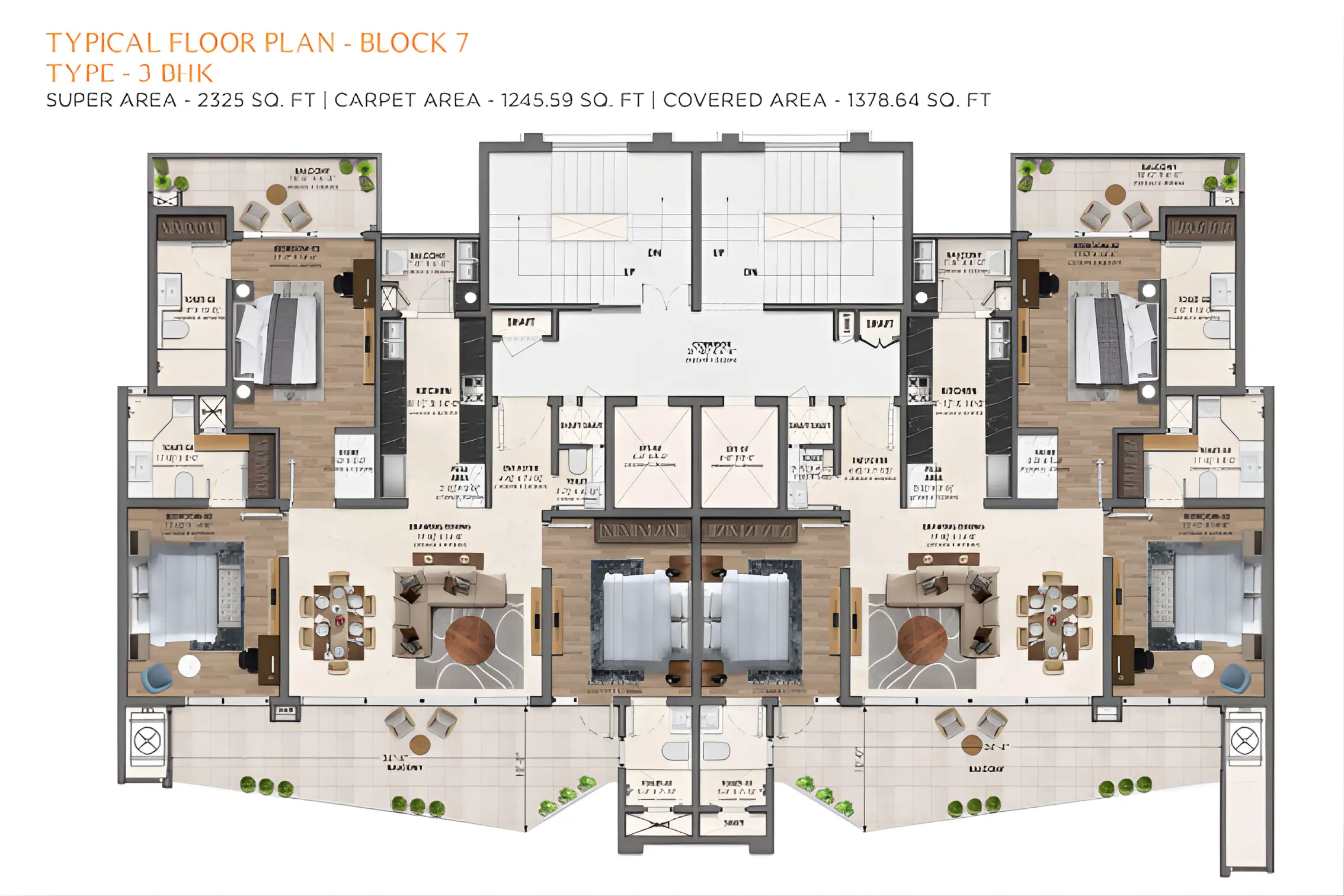 | 3 BHK | 2325 sq ft | 1245 sq ft | 1378 sq ft |