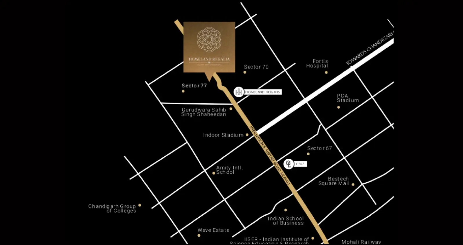 Homeland Regalia is a standout among mohali residential projects, designed for those who appreciate refined living in a bustling yet serene environment. Located along the International Airport Road, this high rise mohali development features six towering structures that redefine luxury residential projects in Mohali. Offering spacious 3BHK, 4BHK, and 5BHK apartments along with exclusive sky villas, it's crafted to provide a royal lifestyle. The project emphasizes sustainability, green spaces, and modern conveniences, making it a top choice for families and professionals. With possession slated for 2028, it's drawing interest from buyers looking at new housing projects in Mohali or upcoming housing projects in Mohali. Its strategic spot ensures easy access to key areas, blending urban vibrancy with peaceful retreats. As part of the vibrant mohali real estate projects scene, it promises high returns and a safe, community-focused haven—addressing queries like "is mohali safe to live" with its secure, gated setup.