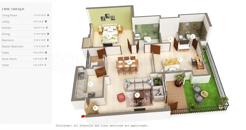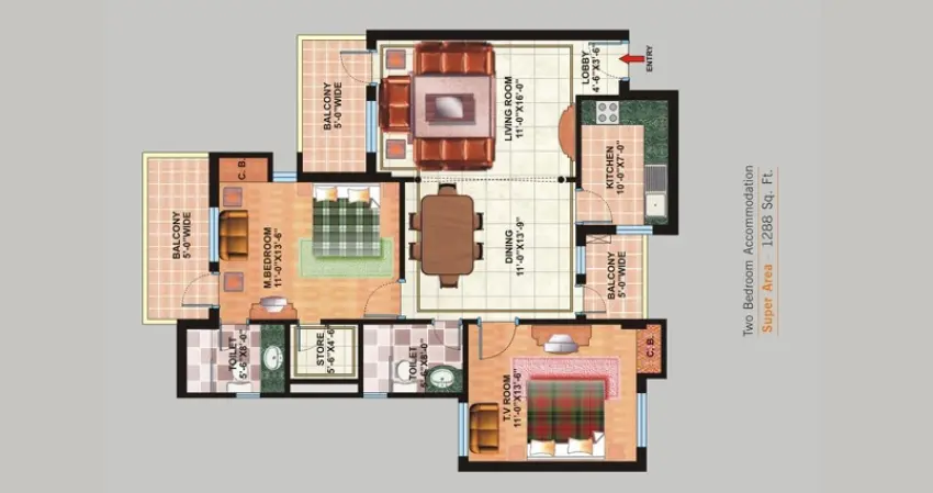 | 2 BHK | 1288-1343 | 900-1050 | 100-150 | 45-55 Lakhs |