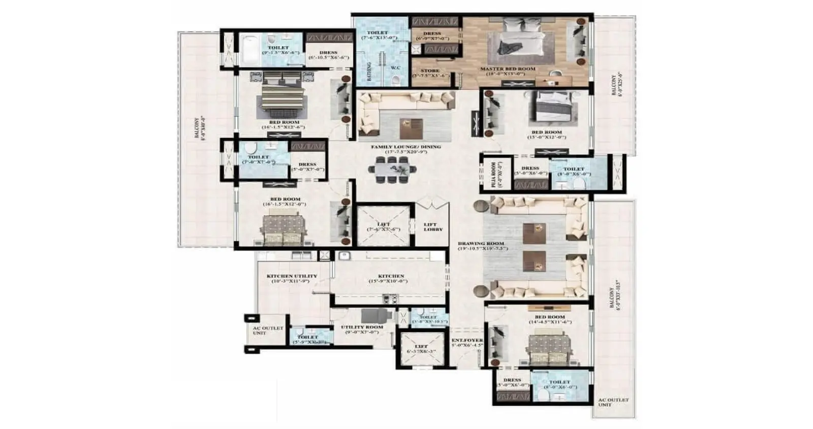 | 5+1 BHK | 5000 | 2968 | Approx. 400 | 5.25 Cr |