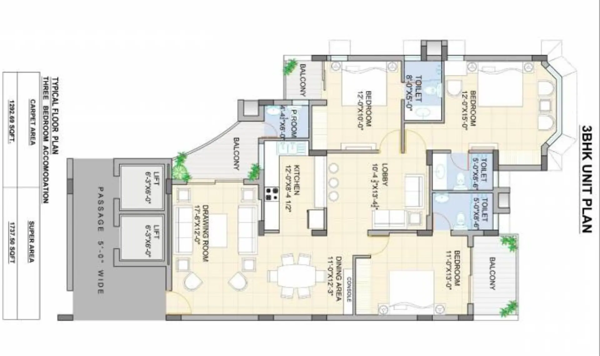 | Floor Type | Super Area (Sq. Ft.) | Carpet Area (Sq. Ft.) | Balcony Area (Sq. Ft.) | Approx. Pricing (INR) |