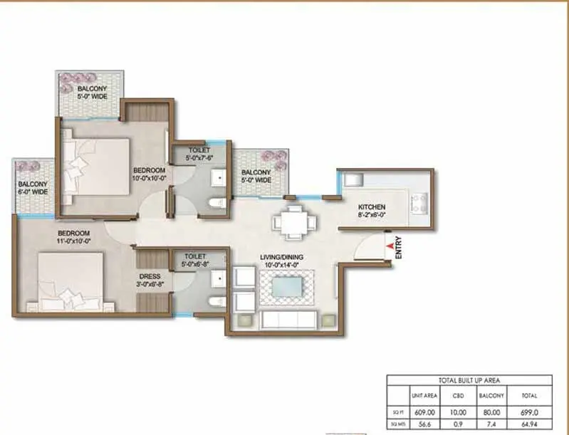 | 2 BHK | 695-699 | Not Specified | Not Specified | Price on Request |